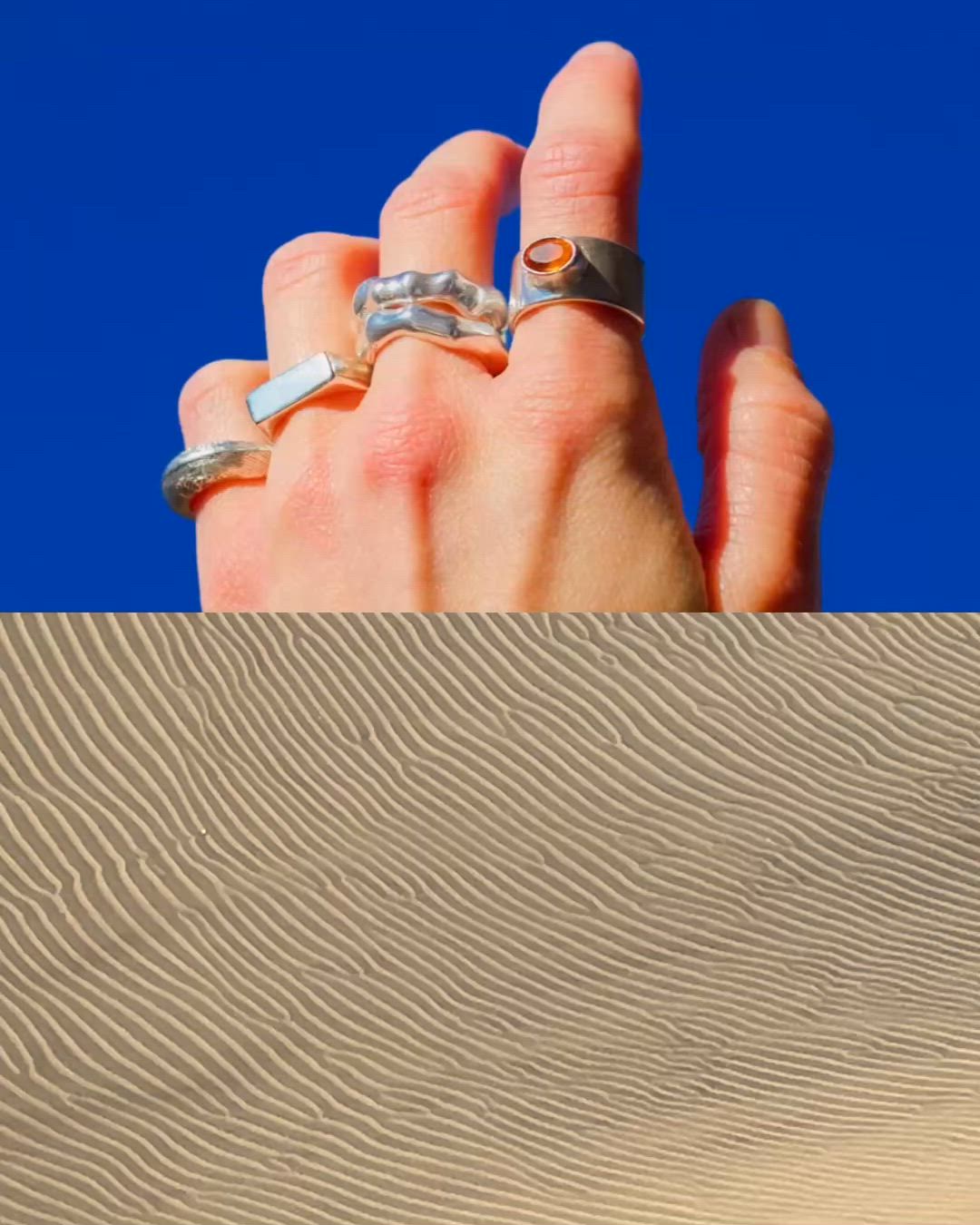 Unser Schmuck entsteht in Handarbeit aus recyceltem 935er Silber. Fließende Linien, natürliche Strukturen und kleine Unregelmäßigkeiten gehören zu unserem Design und machen jedes Stück einzigartig. Inspiriert von organischen Formen erinnern unsere Arbeiten an Wasser, Wachstum oder Haut. Sie passen sich dem Körper an und scheinen mit ihm zu verschmelzen.